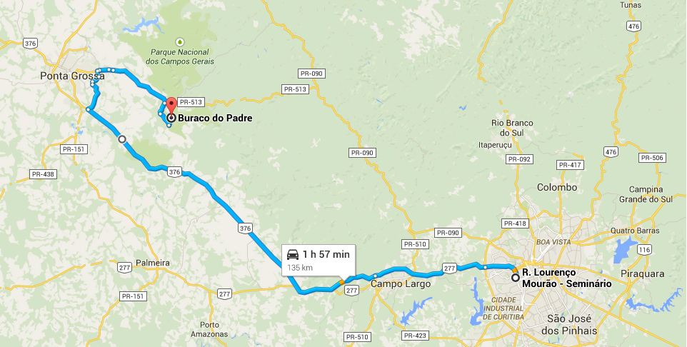 Ao final desta aventura e de um excelente café colonial, retornei a Curitiba pelo centro de Ponta Grossa de forma a evitar as estradas de terra, caindo direto na BR-376.